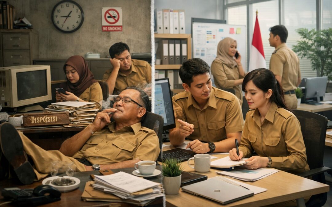 Budaya kerja lama dalam birokrasi publik sering menjadi penghambat utama ketika upaya reformasi mencoba memperbarui cara kerja, layanan, dan hasil yang diharapkan dari Aparatur Sipil Negara (ASN). Budaya lama biasanya berkembang selama bertahun-tahun dan tersusun dari kebiasaan, nilai, norma, dan cara berinteraksi dalam organisasi pemerintahan. Karena tertanam kuat, budaya ini tidak mudah berubah hanya dengan menerbitkan aturan baru; dibutuhkan upaya sistematis, kepemimpinan yang konsisten, serta kombinasi insentif dan sanksi yang jelas. Banyak reformasi birokrasi yang menemukan bahwa meskipun struktur organisasi dan prosedur telah diperbarui, perubahan perilaku sehari-hari pegawai masih tertinggal, sehingga tujuan reformasi sulit tercapai secara penuh. Artikel ini akan menguraikan pengertian budaya kerja lama, ciri-ciri yang sering muncul pada birokrasi publik, akar penyebabnya, dampaknya terhadap pelayanan publik, serta tantangan dan strategi yang relevan dalam mendorong reformasi ASN agar lebih responsif, efisien, dan berorientasi pada kebutuhan masyarakat.